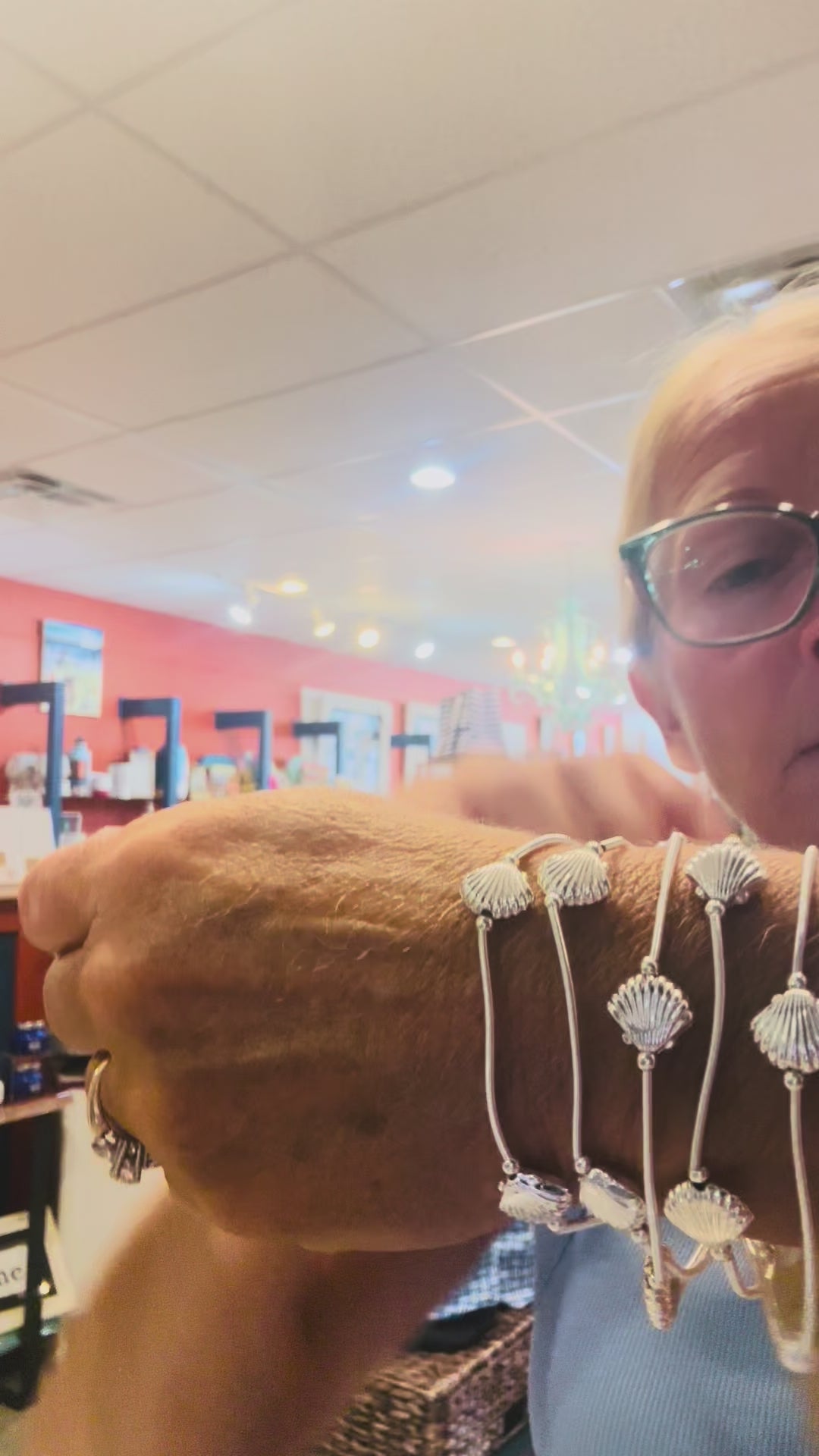 Silver Seashell Bracelet Set! 5 Strands!